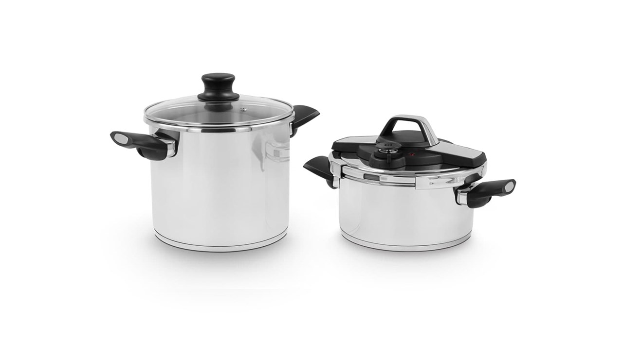 زود پز 2 تایی استیل برند کافلون KF-318W که متشکل از 2 سایز 4 لیتری و 7 لیتری است. ظرفیت گنجایش زودپز 4 لیتری مناسب برای 2 نفر و ظرفیت زود پز 7 لیتری برای 8 الی 10 نفر بسنده می‌کند. شما با خریداری این محصول 2 سایز متفاوت و کاربردی زود پز با کیفیت کافلون را خواهید داشت.